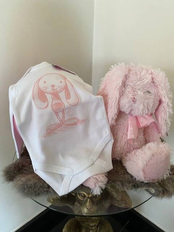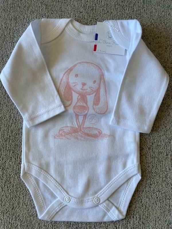Romper l'ours de Kiwi 0-3mnd., wit met roos konijntje.