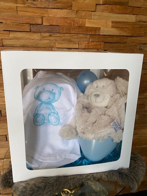 Kadobox baby: romper l'ours de kiwi 0-3mnd.: wit met blauw beertje.